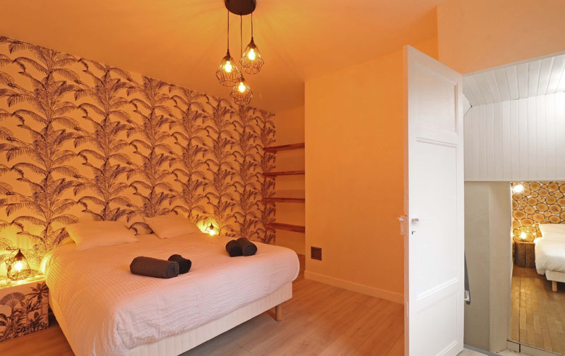 - Chambre double avec salle de bain privative (premier étage) : 2 couchages dans un lit double