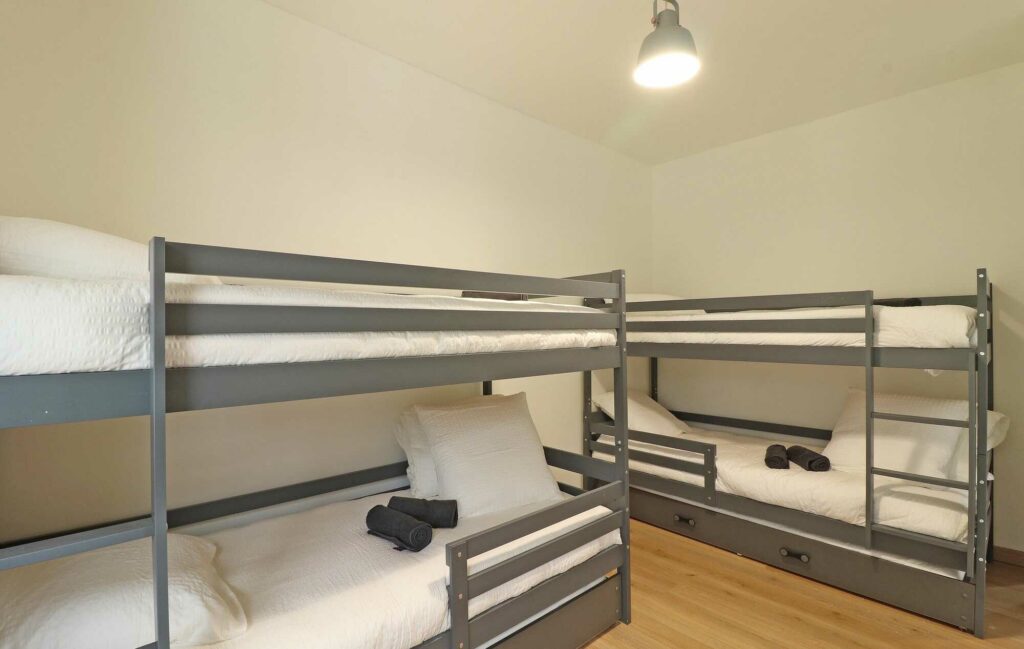 Un lit double confortable au sein d’une chambre de quatre, idéal pour profiter d’un tarif avantageux tout en partageant l’espace avec un autre duo de lecteurs.